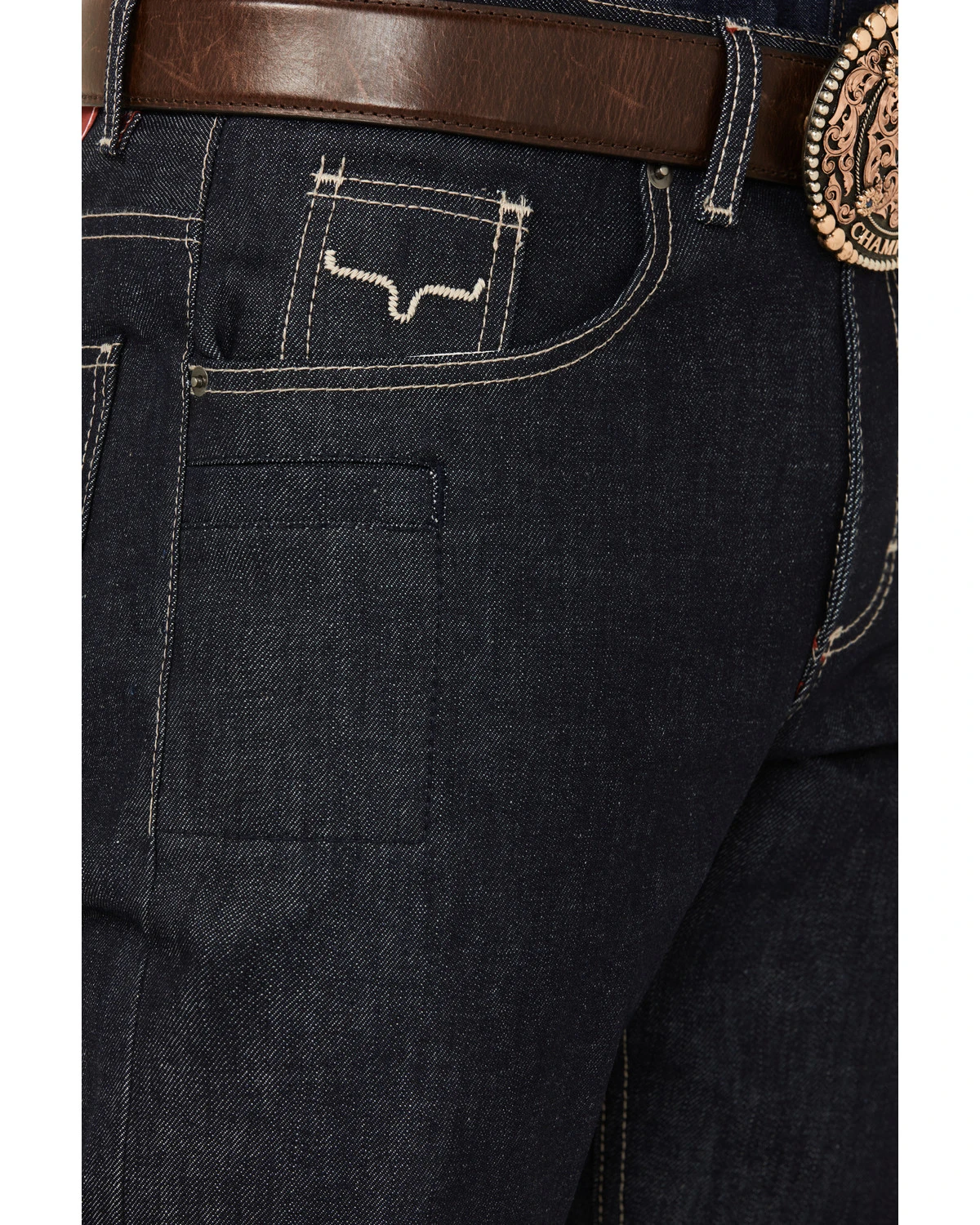 - Integrated knife pocket with light stitched detailing on back pockets